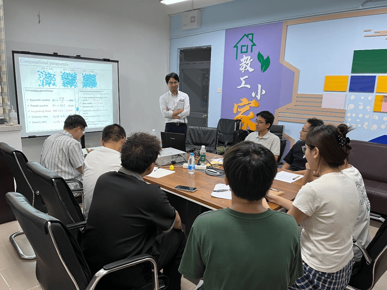 报告中,Suzuki教授系统介绍了浸没边界-格子玻尔兹曼方法(IB-LBM)在模拟含有移动边界的流体流动与传热问题中的基本原理、算法优势以及最新研究进展。他结合冰浆流动等实际工程案例,生动展示了该方法在复杂多相流与换热过程中的高效性与准确性,并分享了其团队在颗粒全解析模拟方面的创新成果。