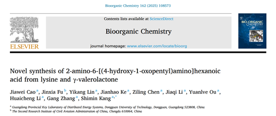 2023级能源动力硕士研究生曹嘉伟以第一作者在国际知名期刊《Bioorganic Chemistry》(中科院1区)上发表题为"Novel synthesis of 2-amino-6-[(4-hydroxy-1-oxopentyl)amino]hexanoic acid from lysine and γ-valerolactone”学术论文,康世民副教授为通讯作者,银河娱乐(GEG)官网