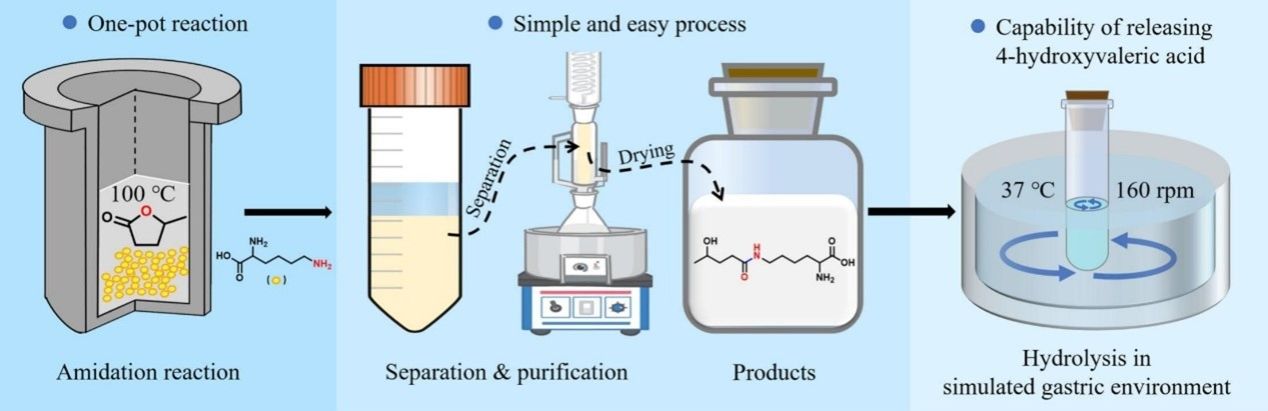 曹嘉伟:Novel synthesis of 2-amino-6-[(4-hydroxy-1-oxopentyl)amino]hexanoic acid from lysine and γ-valerolactone